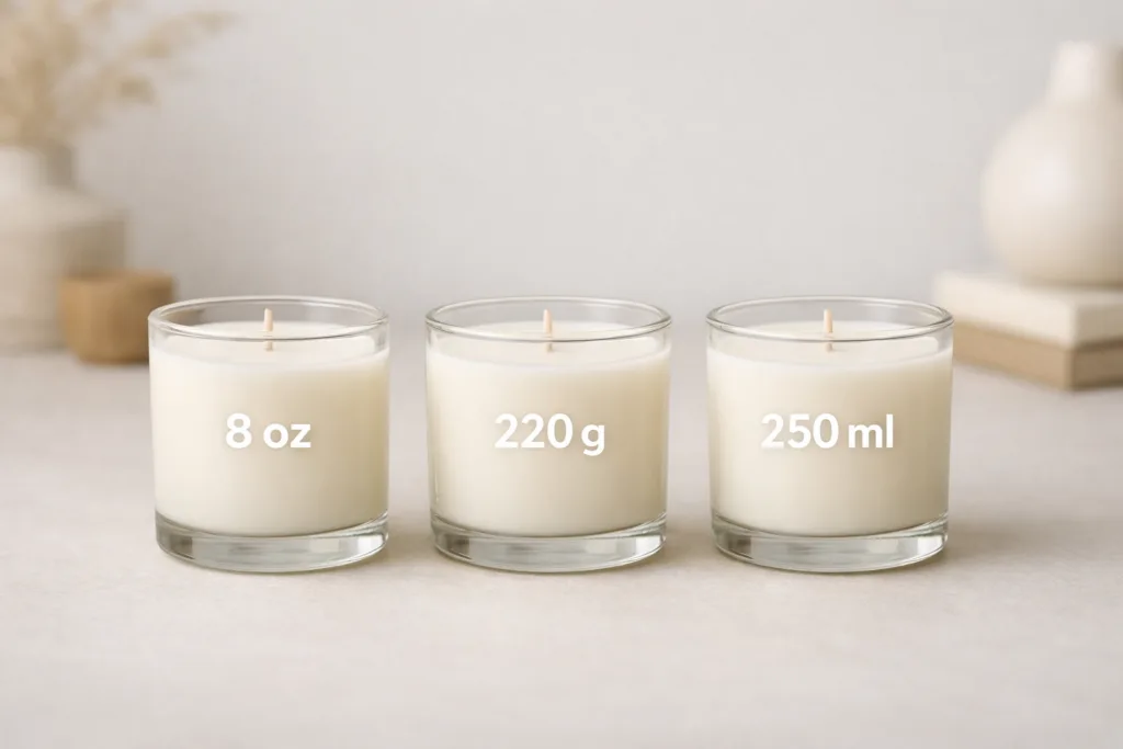 Why does one candle say 8 oz, another 220 g, and another 250 ml… and none of them seem the same size?